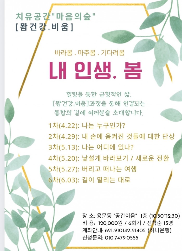 그래서 준비했습니다. 이제는 긴 호흡으로 6주간 진행합니다.