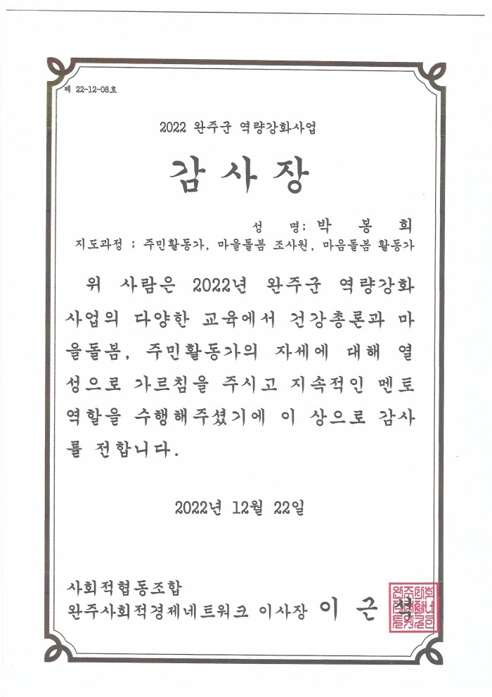 완주사회적경제네트워크_성과보고대회 여러분 ! 덕분입니다.