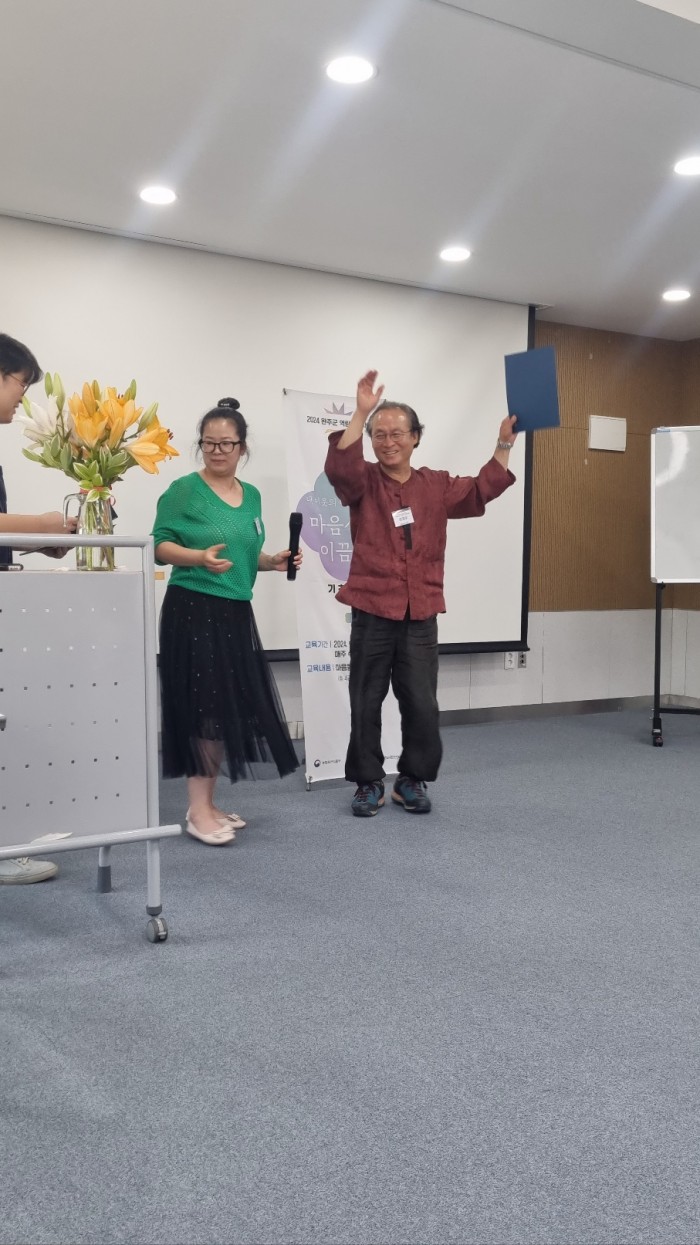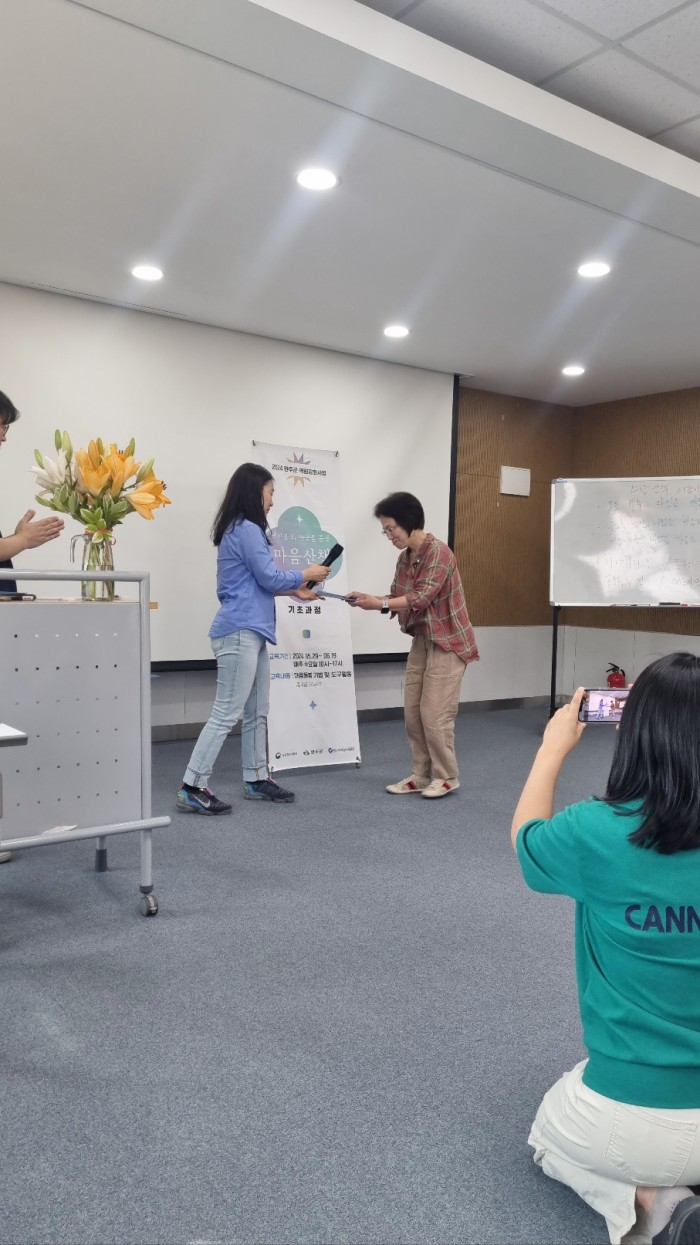 연신 벌써 끝났다며 아쉬워하던 선생님들, 4주 내내 눈물을 적시던 한 선생님은 활짝 웃는 웃음으로 수료증을 받아들었습니다.