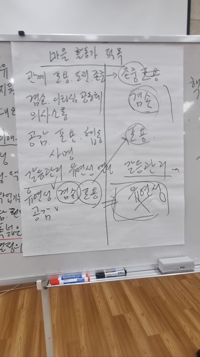 결국, 서로 동의와 합의하에 마을활동가로서 3개의 덕목을 선정하였다.