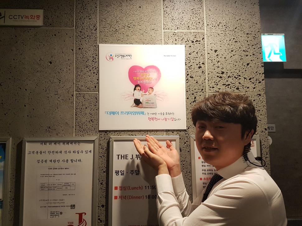 맛있는 커피 수익금으로 월 50만원씩 후원하여 유성구 틈새가정을 지원하여 주시기로 하고, 연 120장의 뷔페 이용권을 저소득가정에 지원해 주시기로 하셨습니다.