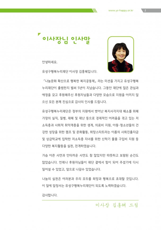 "HappyYA" 유성구행복누리재단 2019년 소식지