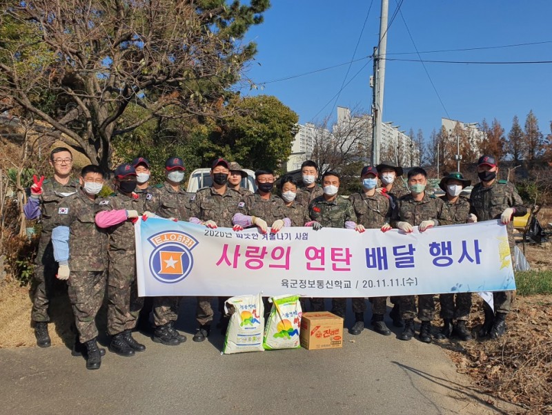 11월 11일, 육군정보통신학교에서 유성구 저소득 독거어르신 가정에 "사랑의 연탄과 백미, 라면"을 지원해 주셨습니다.
