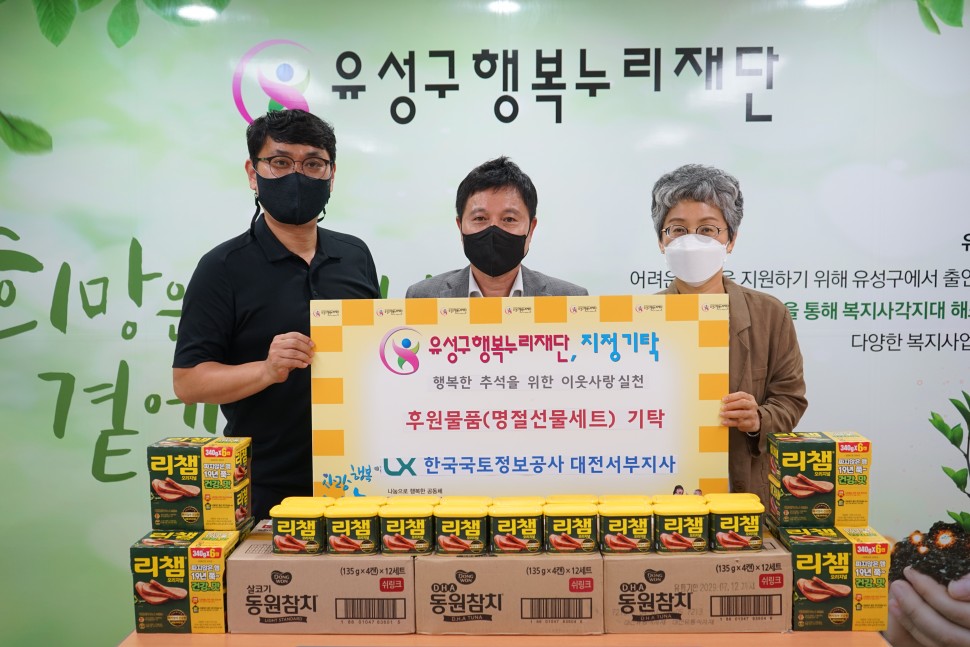 한국국토정보공사 대전서부지사에서 유성구 취약계층 지원을 위해 후원물품을 기탁해 주셨습니다.