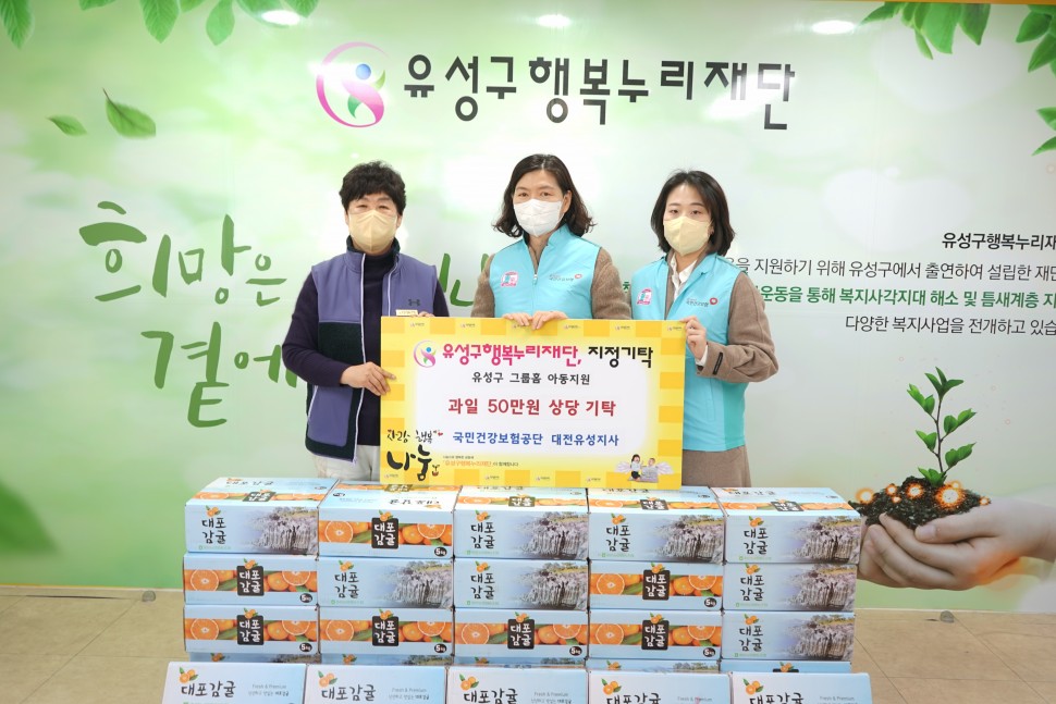 연말을 맞이하여 그룹홈 아동들이 맛있는 과일을 먹고 건강하고 씩씩한 생활을 하길 바라는 마음으로 기탁해 주신 국민건강보험공단 대전유성지사에 감사를 드립니다.