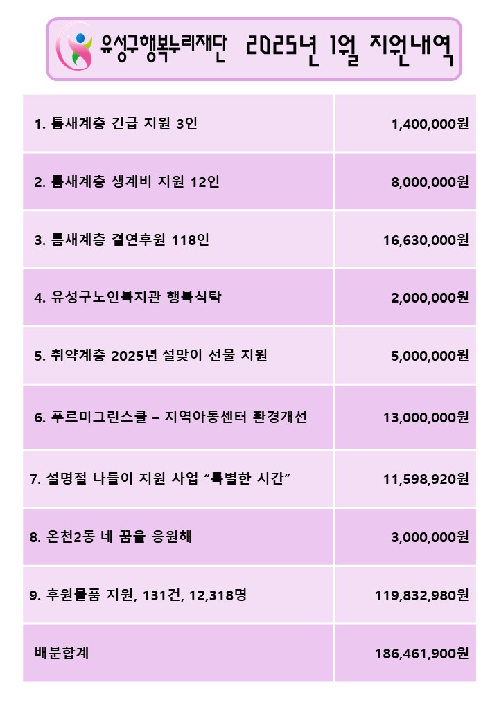 2025년 1월 행복나눔 지원내역