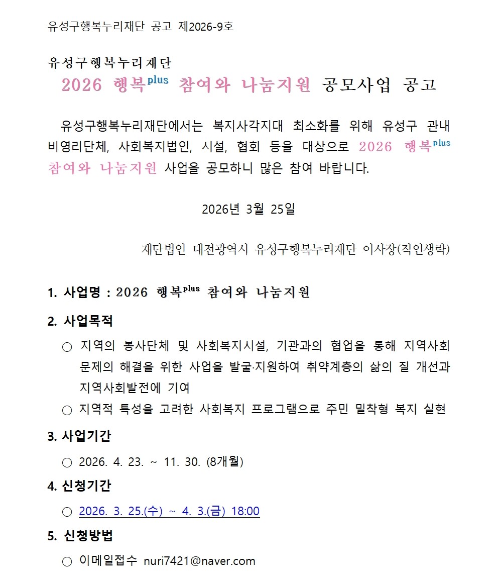 2026 행복plus 참여와 나눔지원 공모사업 공고