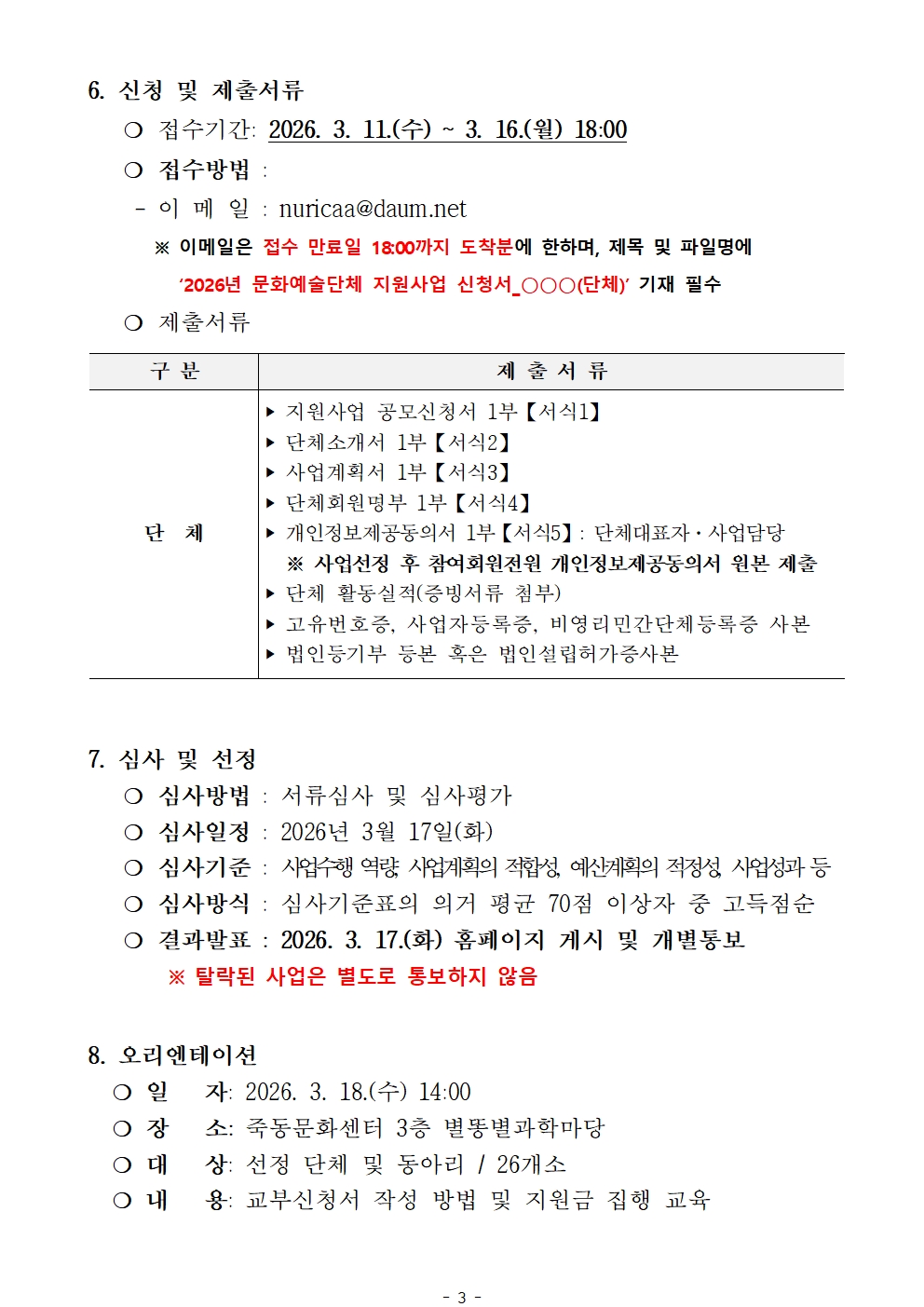 2026년 문화예술단체 및 문화예술동아리 지원사업 선정결과 공고