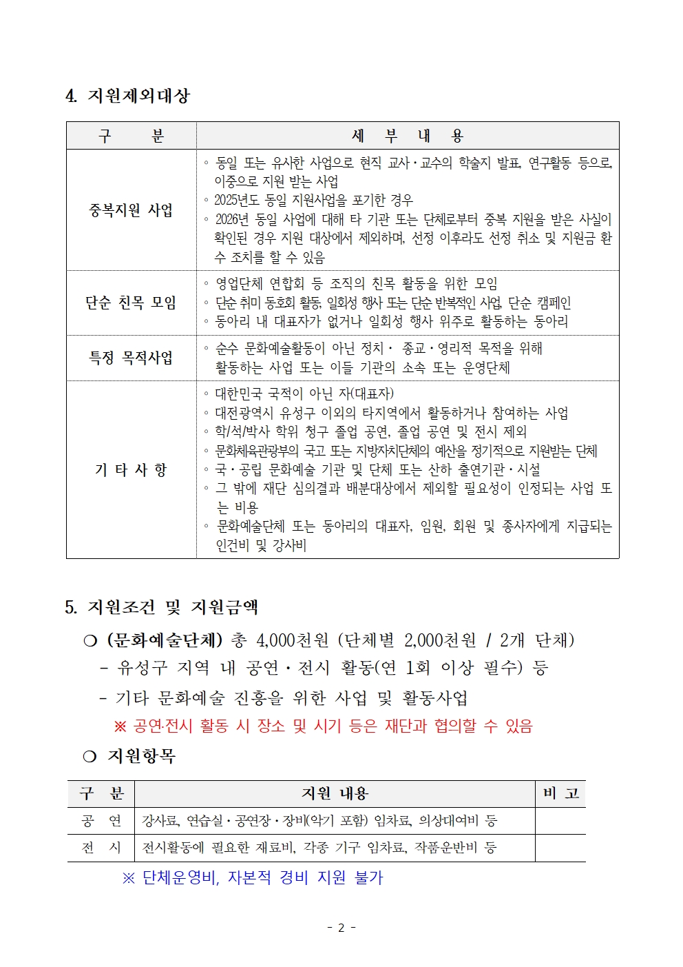 2026 문화예술단체 및 문화예술동아리 지원사업 공고